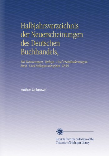 Free Halbjahrsverzeichnis der Neuerscheinungen des Deutschen Buchhandels,: Mit Voranzeigen, Verlags- Und Preisänderungen, Stich- Und Schlagwortregister. 1859 PDF Download